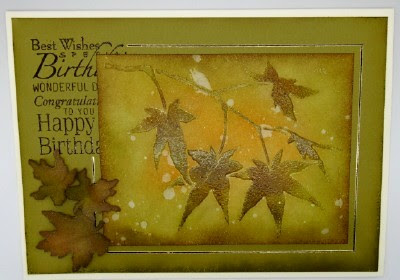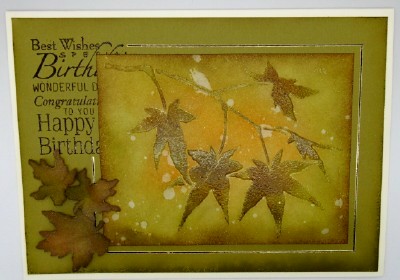 Kimx For my card I chose to use a lovely Dreamweaver Metal stencil which I dry embossed using my Cuttlebug. I then heat embossed the leaves to highlight them. See my blog for more details.