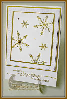 Needing to get Christmas card going.I went for a CAS card using bothdry and heat embossing. Snowflakes and sentiment are SU, embossing folder is an old Cuttlebug one.