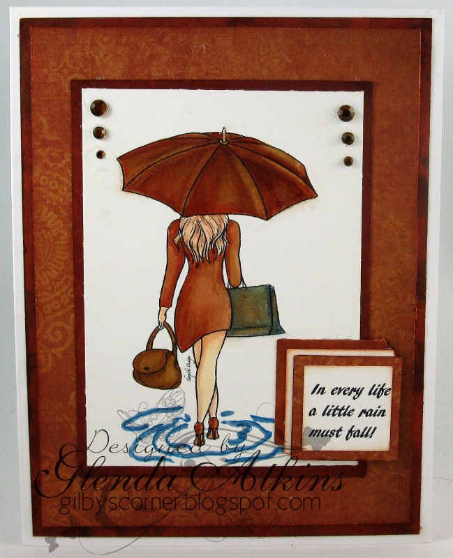 The image is from Star Stampz called Rain, coloured her with Promarkers, the Sentiment is made with Paint.com