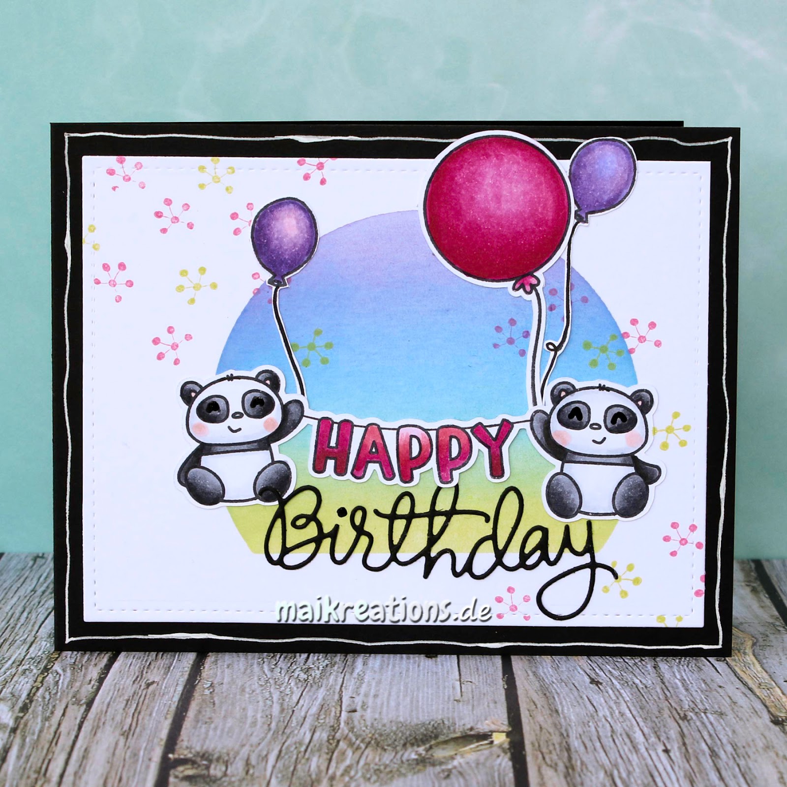 For my card, I have used the pandas from the "Party Pals" set by Avery Elle. Usually I shy away from black card bases, but with this colour combination I thought it would bring out the bright colours even more.