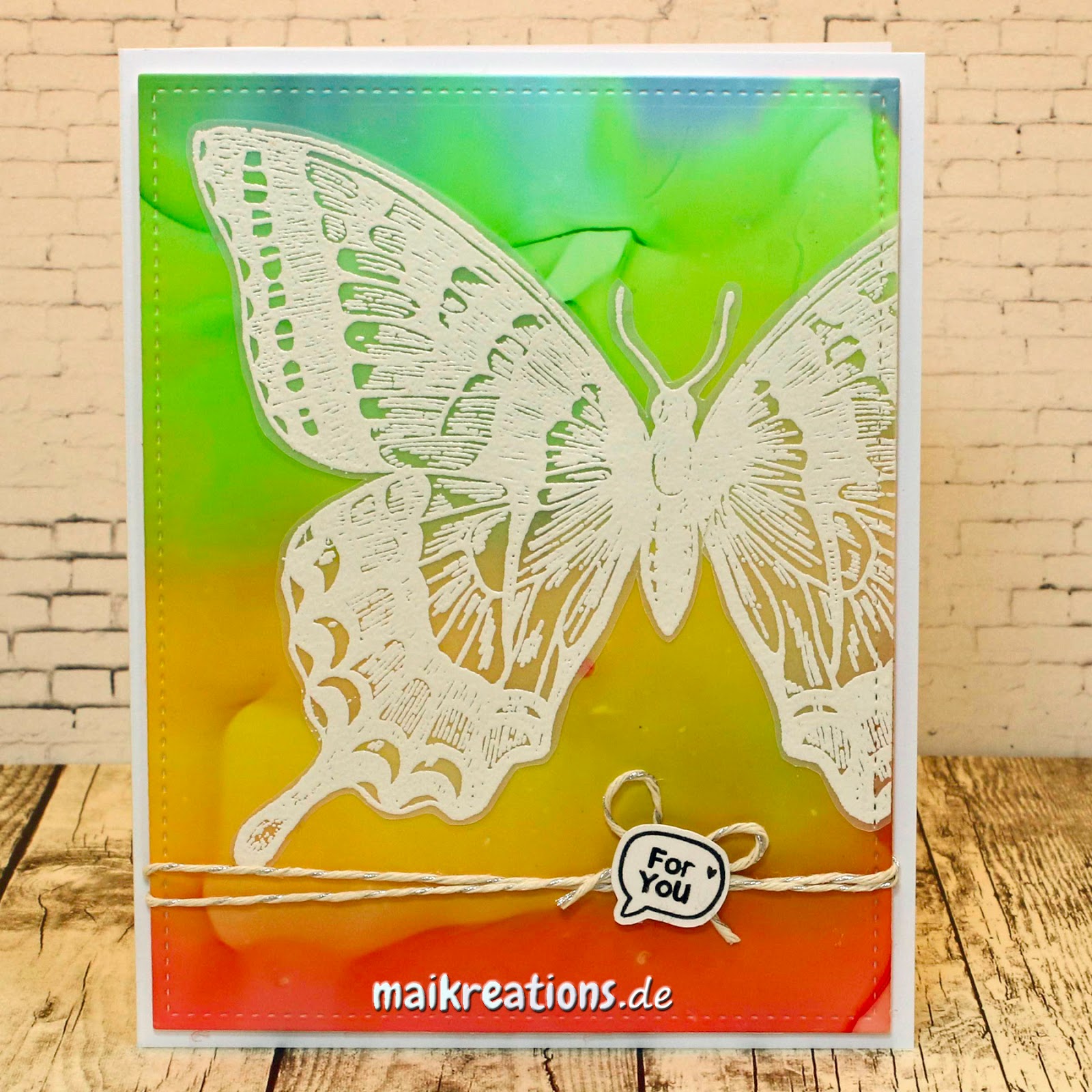 I used Copic refill colours on Yupo paper to create the background and added this beautiful butterfly by Stampin Up to it.