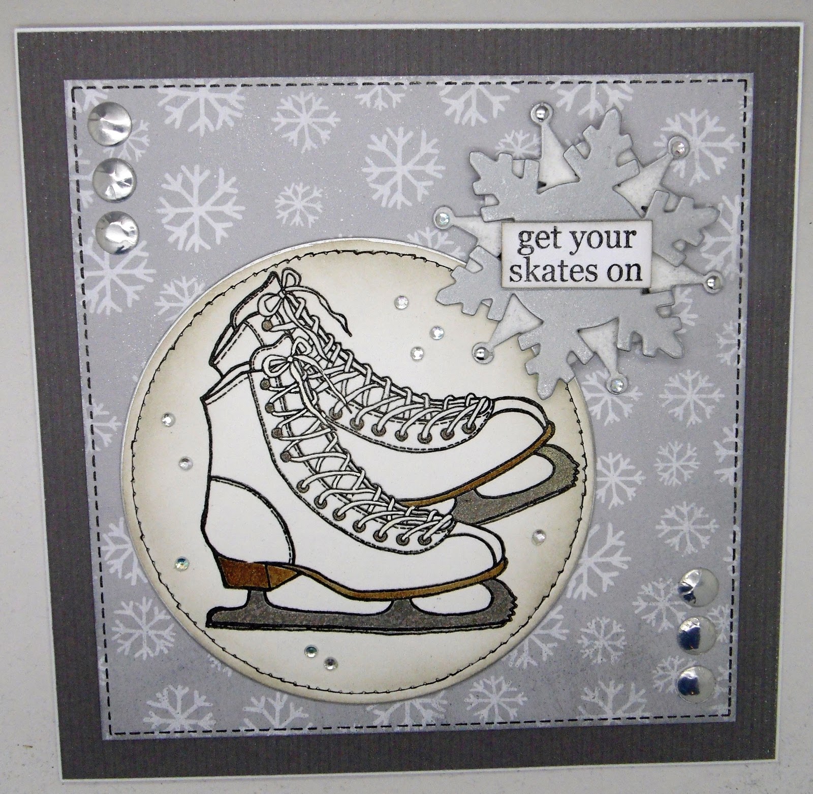 Ice skating, what a perfect sport for the winter, although I have never tried it myself, and don't intend to start either lol. My card was made using a fabulous stamp design from Jane Gill.