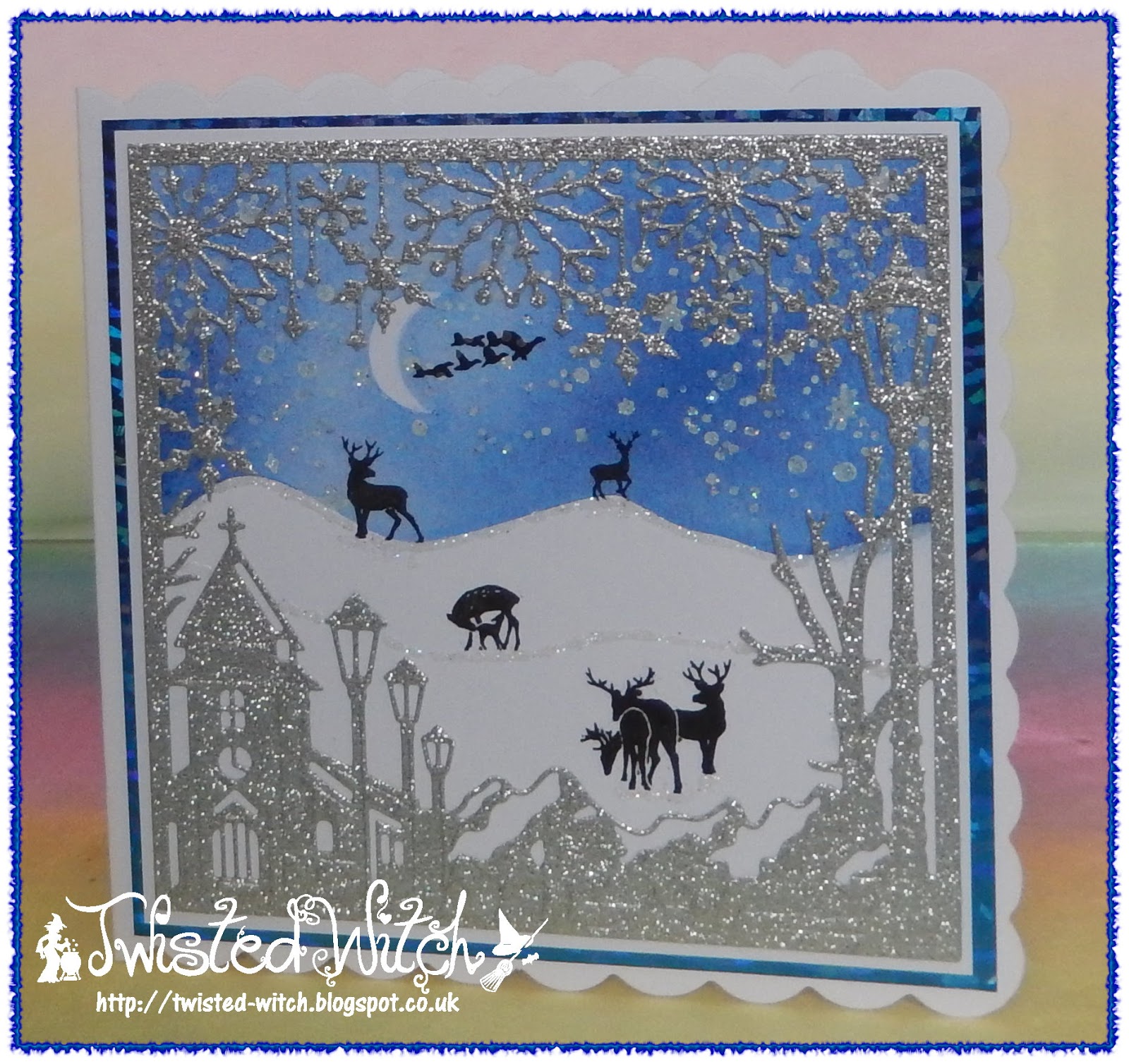 Made this card using an embossing folder for the Snowflakes then coloured one lighter and one darker piece to give the depth then layered them up with the die cut images and completed the card with a Tim Holtz sentiment die and Stickles Glitter Glue. Happy crafting, Angela xXx