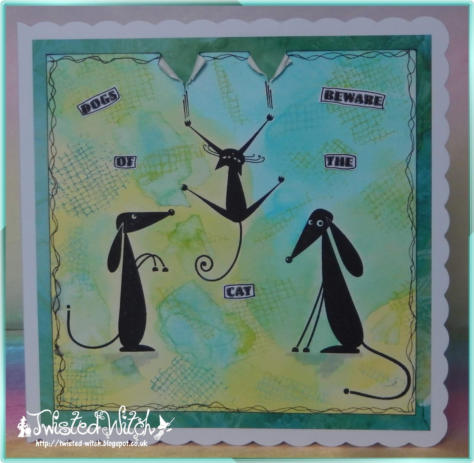 I have used three different coloured mats, two sentiments and one image. The image and sentiments are from Acid Drops and Whatnots.