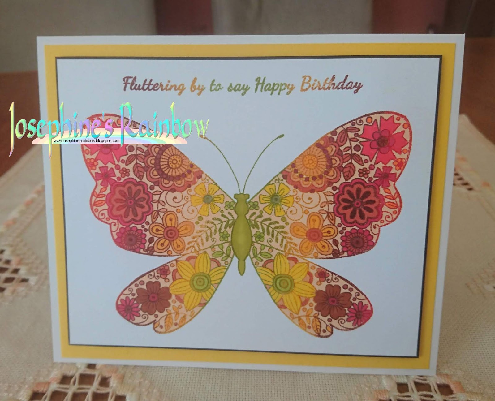 I have chosen a beautiful old Stamps Happen stamp and a mop up background for my card.