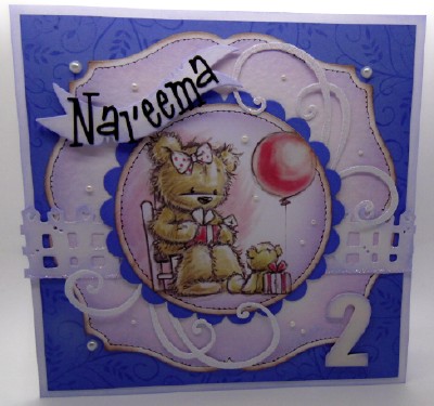 I used a Bebunni stamp to make a clean and simple card, colouring the image using Promarkers and outlining with silver craft strips.