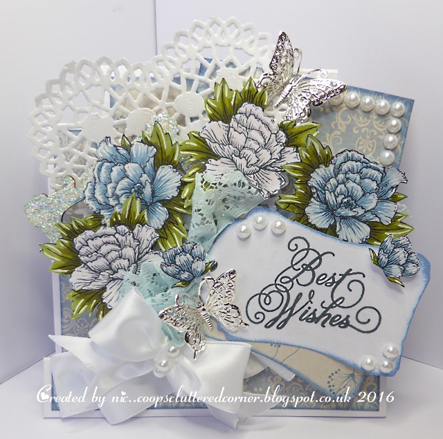 Simply stunning. Beautifully coloured image and great distressing. Gorgeous floral arrangement.