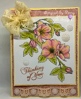 I used Tattered Lace's Sweet Serenity Blissful Blooms CD ROM and matching dies together with a Tattered Lace embossing folder.