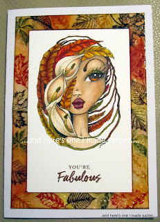 I used an image from Hunkydory's Little Book of Autumn and matted and layered it onto navy and white. After outlining it with orange strips of peel off I decoupaged the image.